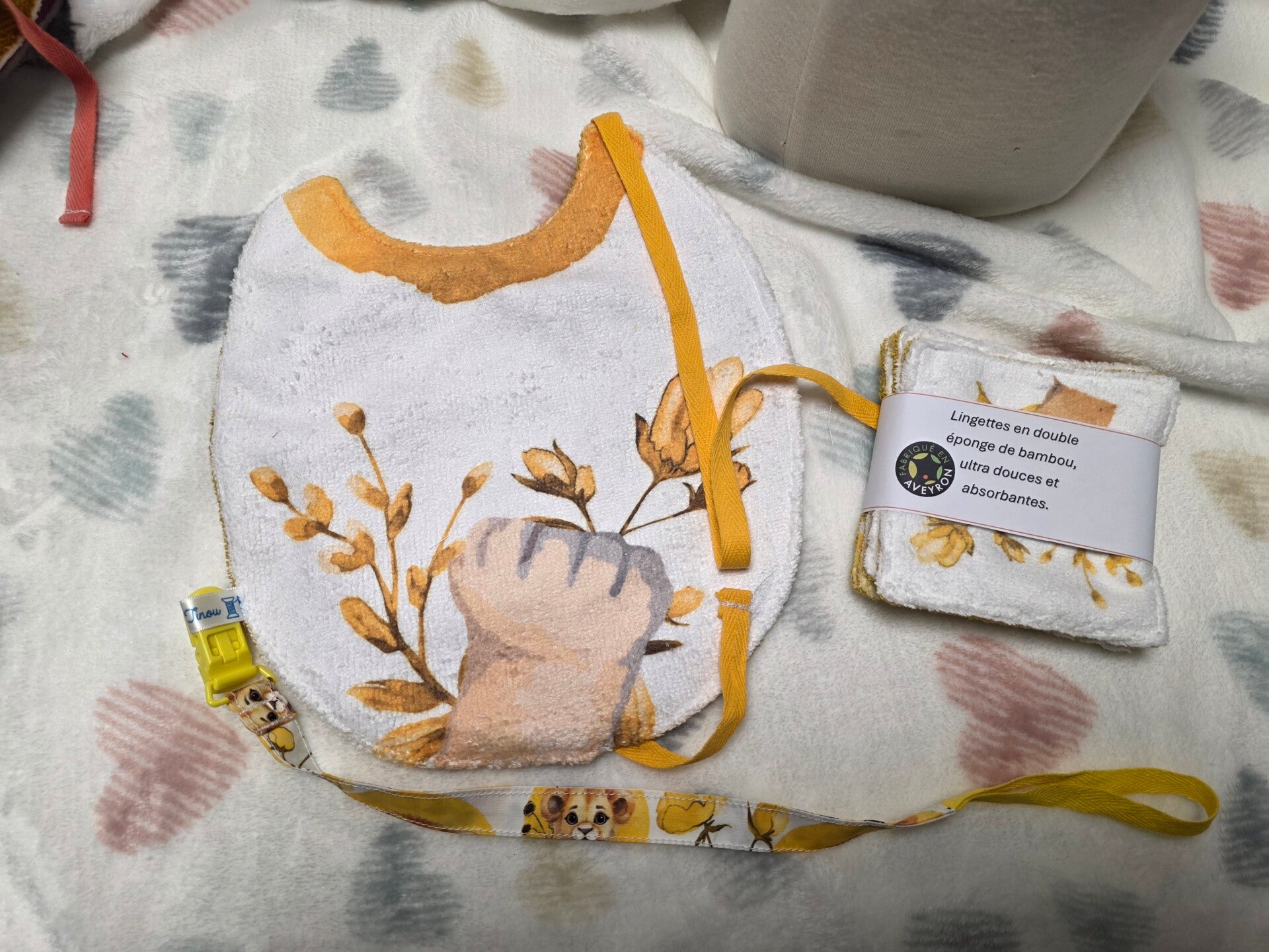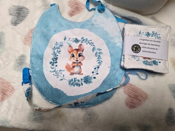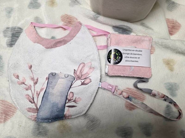 Box Essentielle – 4 Lingettes Double Bambou + 1 Bavoir Double Bambou + 1 attache susu en coton