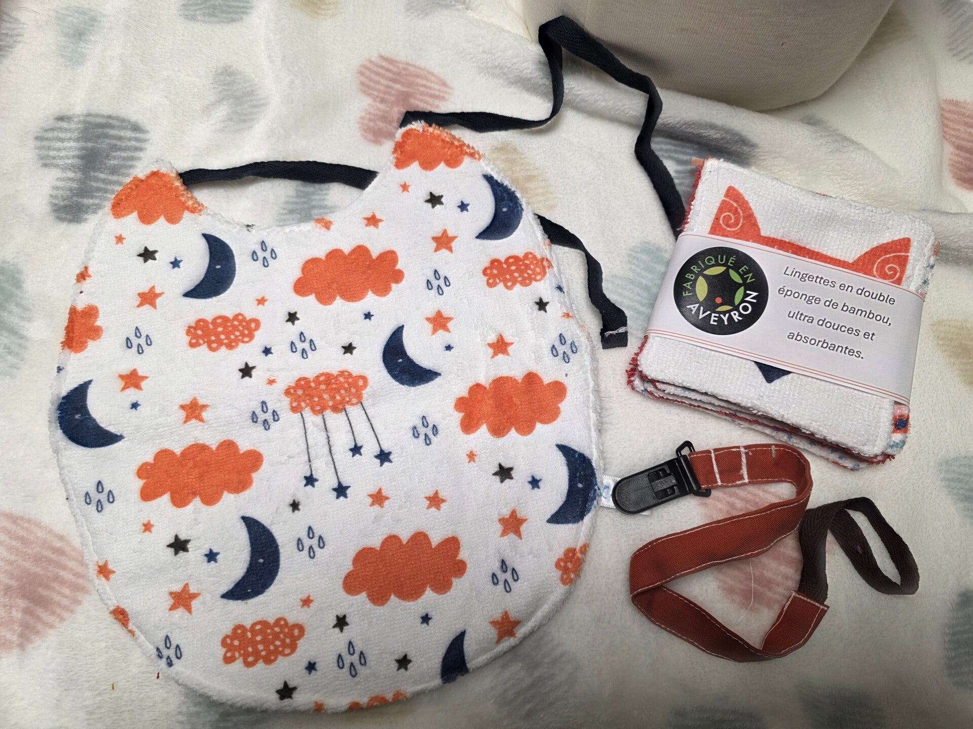 Fermeture pratique et tissu agréable pour la peau sensible. - Une attache susu en coton avec un cordon et une attache ce qui permet de ne plus la chercher partout. Ne pas laisser sans la surveillance d'un adulte