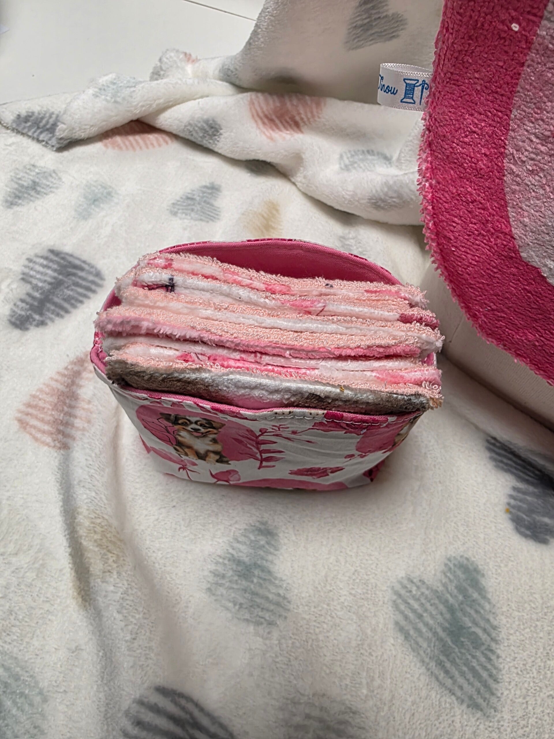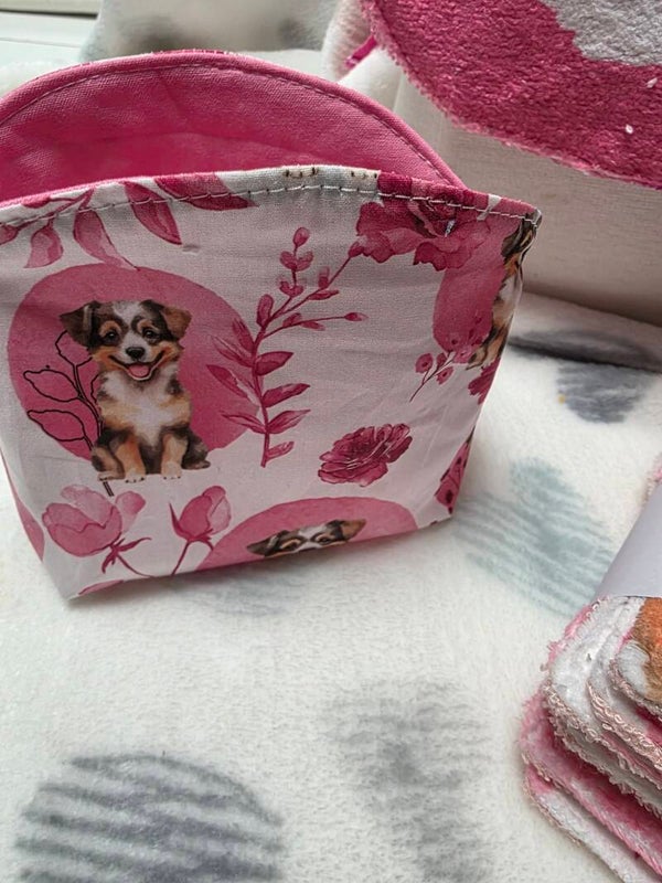Fermeture pratique et tissu agréable pour la peau sensible. - Un petit panier en coton assorti qui permet de pouvoir ranger les lingettes